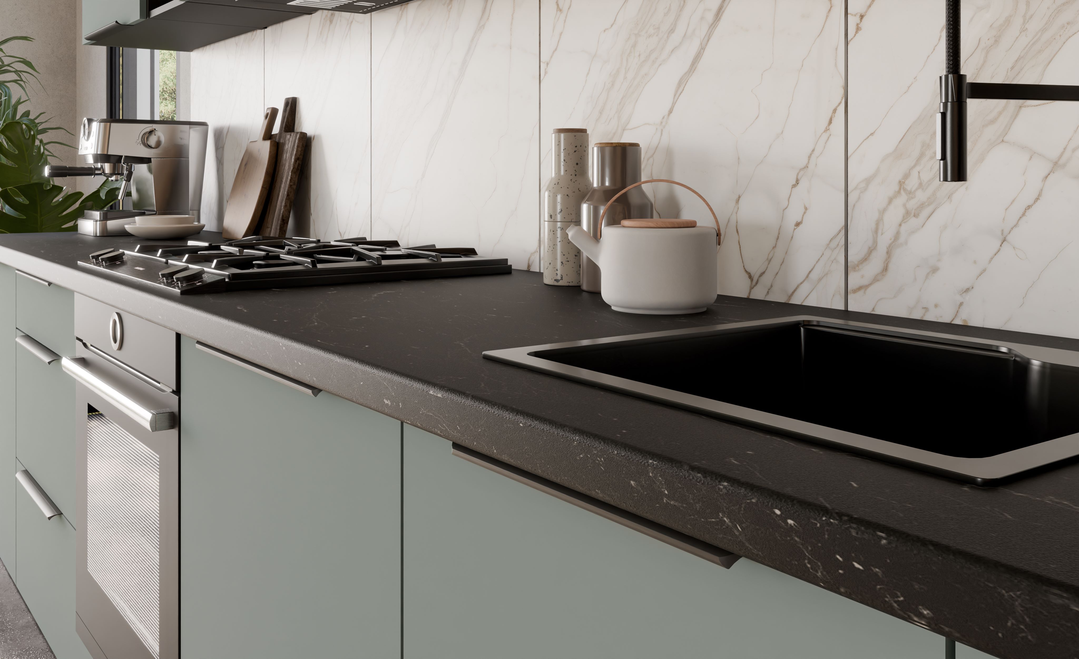 Wymiary: 900 x 820 x 520 mm (szer. x wys. x gł.) Ilość paczek: 2 Front: - płyta laminowana 16 mm - Aquamarine AFM - obrzeże ABS 1 mm - Aquamarine AFM - uchwyt: metal czarny mat, rozstaw 256 mm, długość 290 mm - zawiasy z cichym domykiem Korpus: - płyta laminowana 16 mm - czarny - obrzeże melamina - czarny Ściana tylna: - płyta HDF 2,5mm - biała