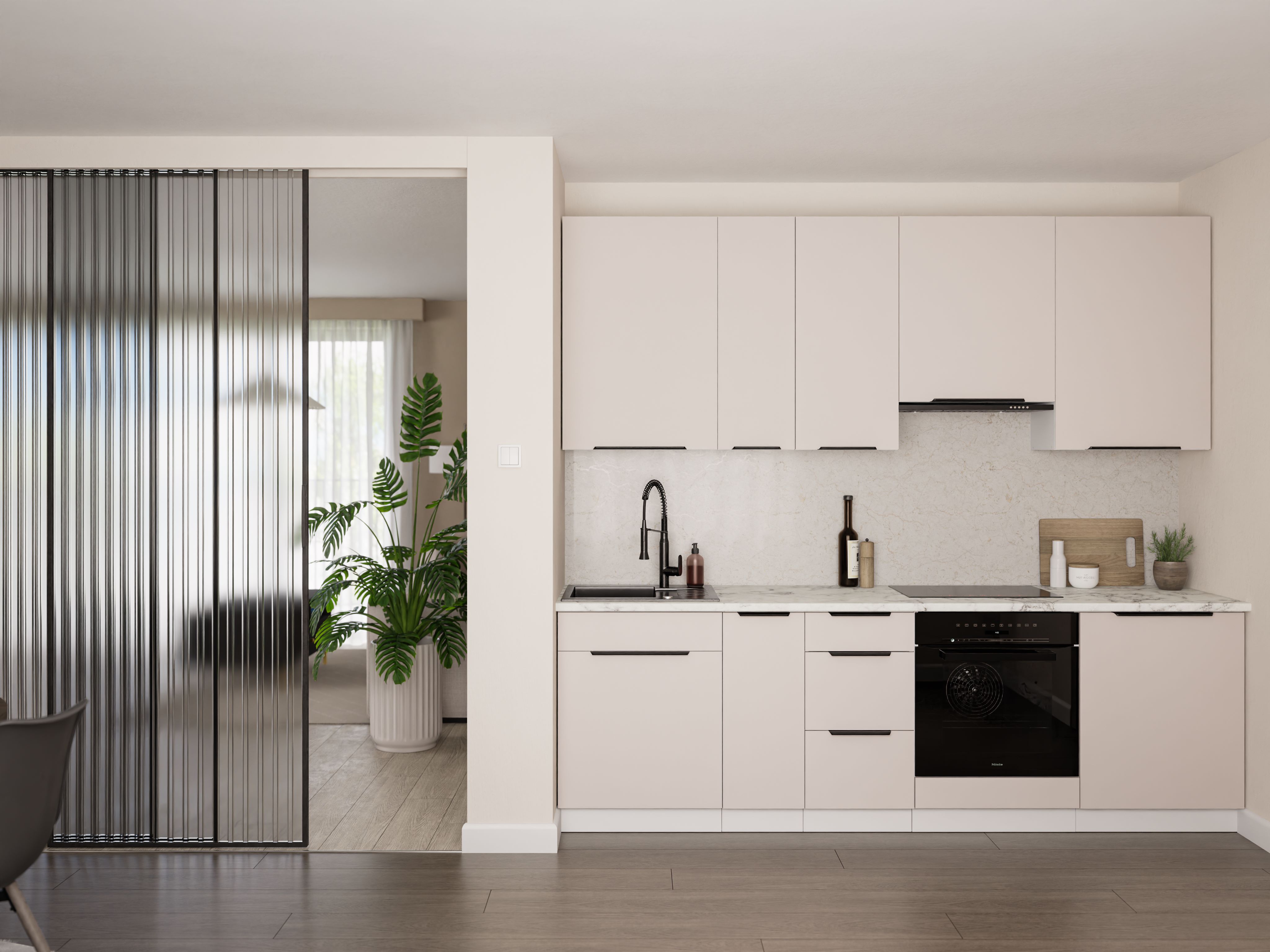 Wymiary: 300 x 900 x 310 mm (szer. x wys. x gł.) Ilość paczek: 2 Front: - płyta laminowana 16 mm - cashmere - obrzeże ABS 1 mm - cashmere - uchwyt: metal czarny mat, rozstaw 160 mm, długość 190 mm - zawiasy z cichym domykiem Korpus: - płyta laminowana 16mm Biała - obrzeże melamina Białe Ściana tylna: - płyta HDF 2,5mm - biała