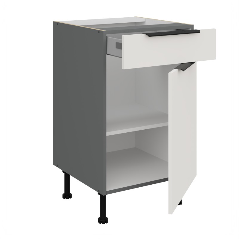 - prowadnica szuflady z cichym domykiem, pełen wysuw, boki szuflady metalowe