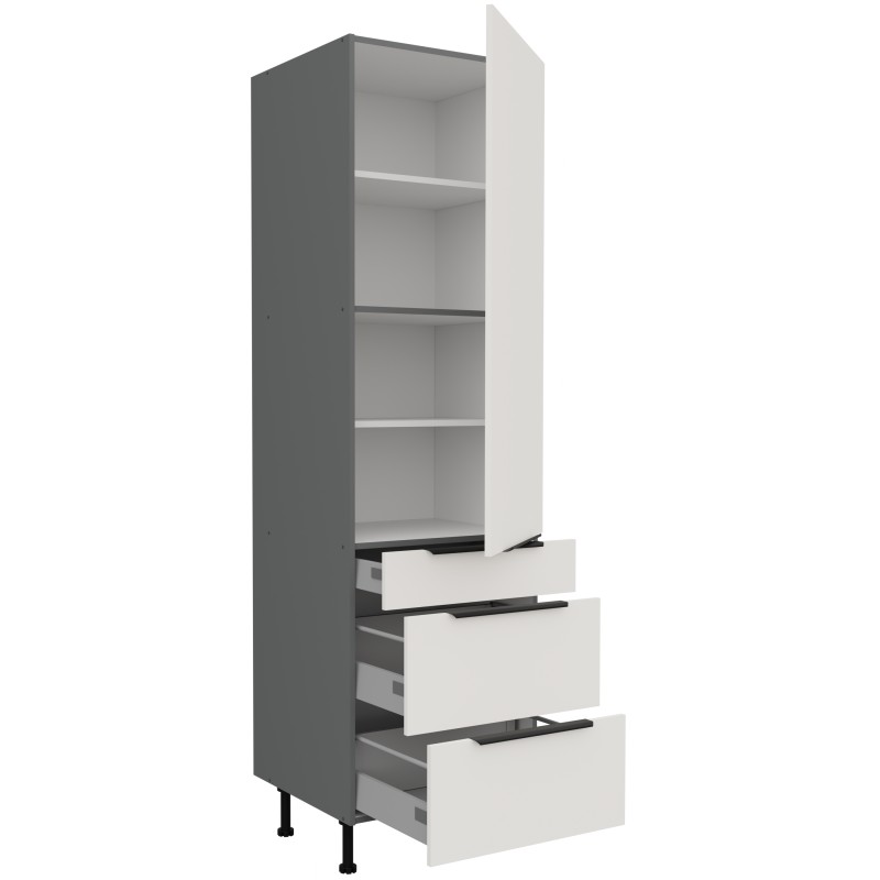 Szafka posiada jeden front i trzy szuflady. Szafka ma trzy półki.