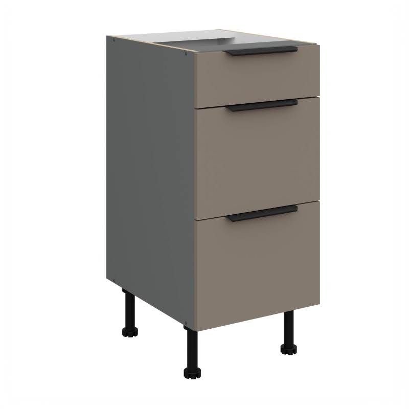 Szafki dolne posiadają regulowane nóżki w zakresie 135 mm - 160 mm.