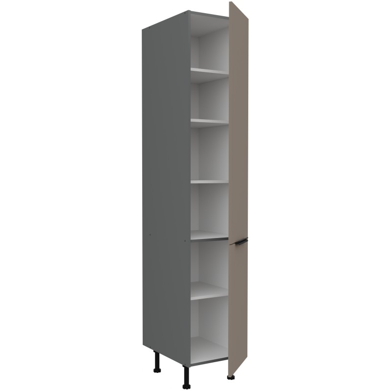 Szafka posiada dwa fronty. Szafka ma cztery półki.