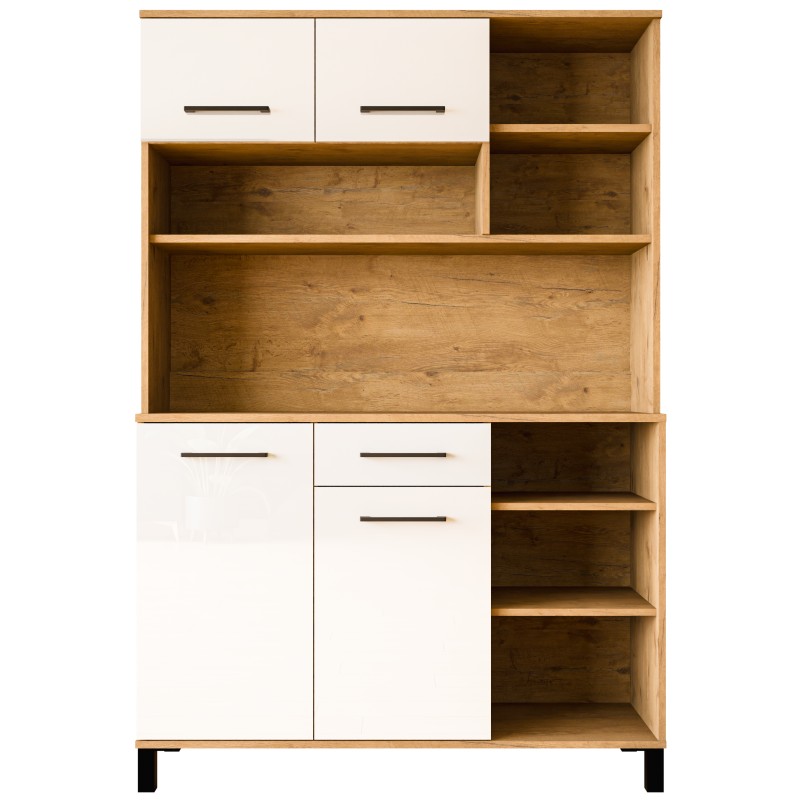 Szafka górna posiada dwoje drzwi. Szafka ma jedną półkę.
