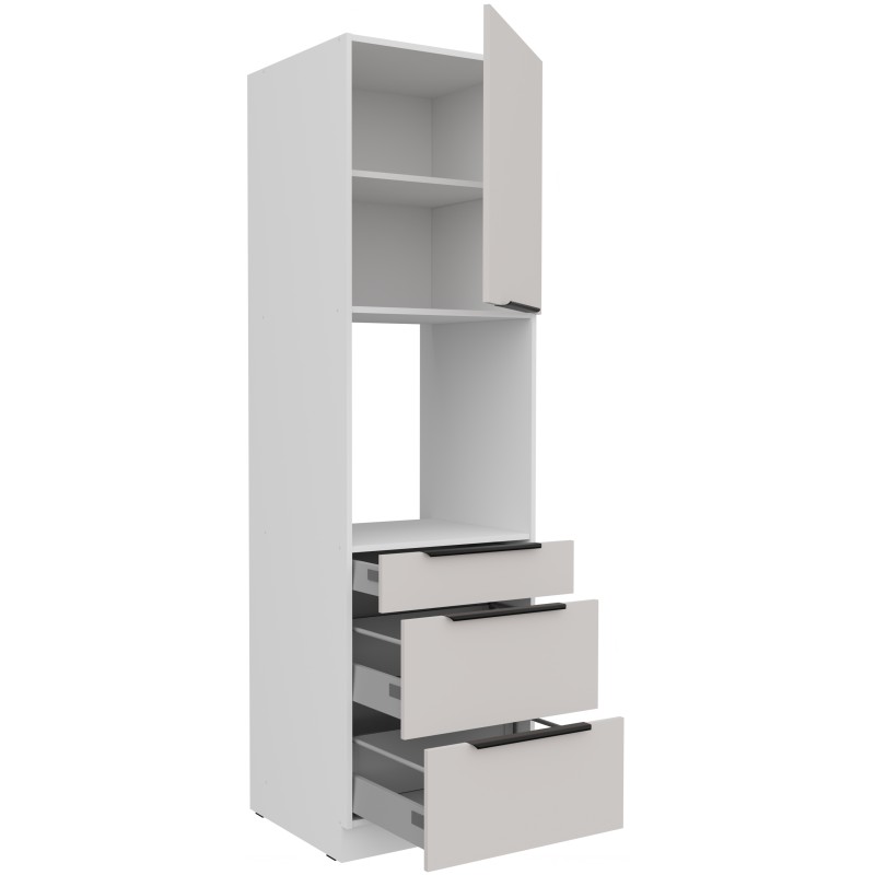 Szafka posiada jeden front i trzy szuflady. Szafka ma jedną półkę.