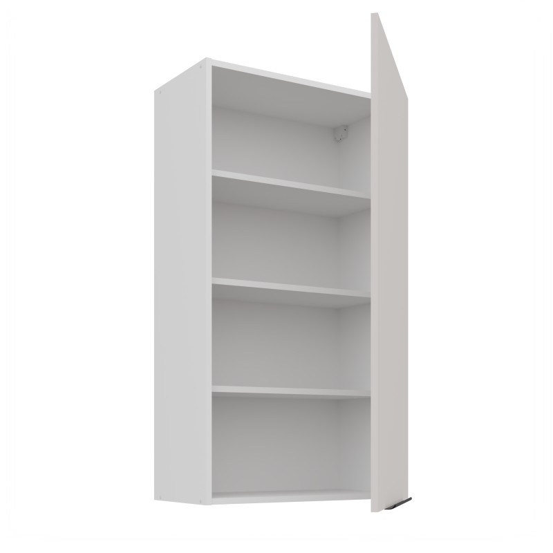 Szafka posiada jedne drzwi. Szafka ma trzy półki.
